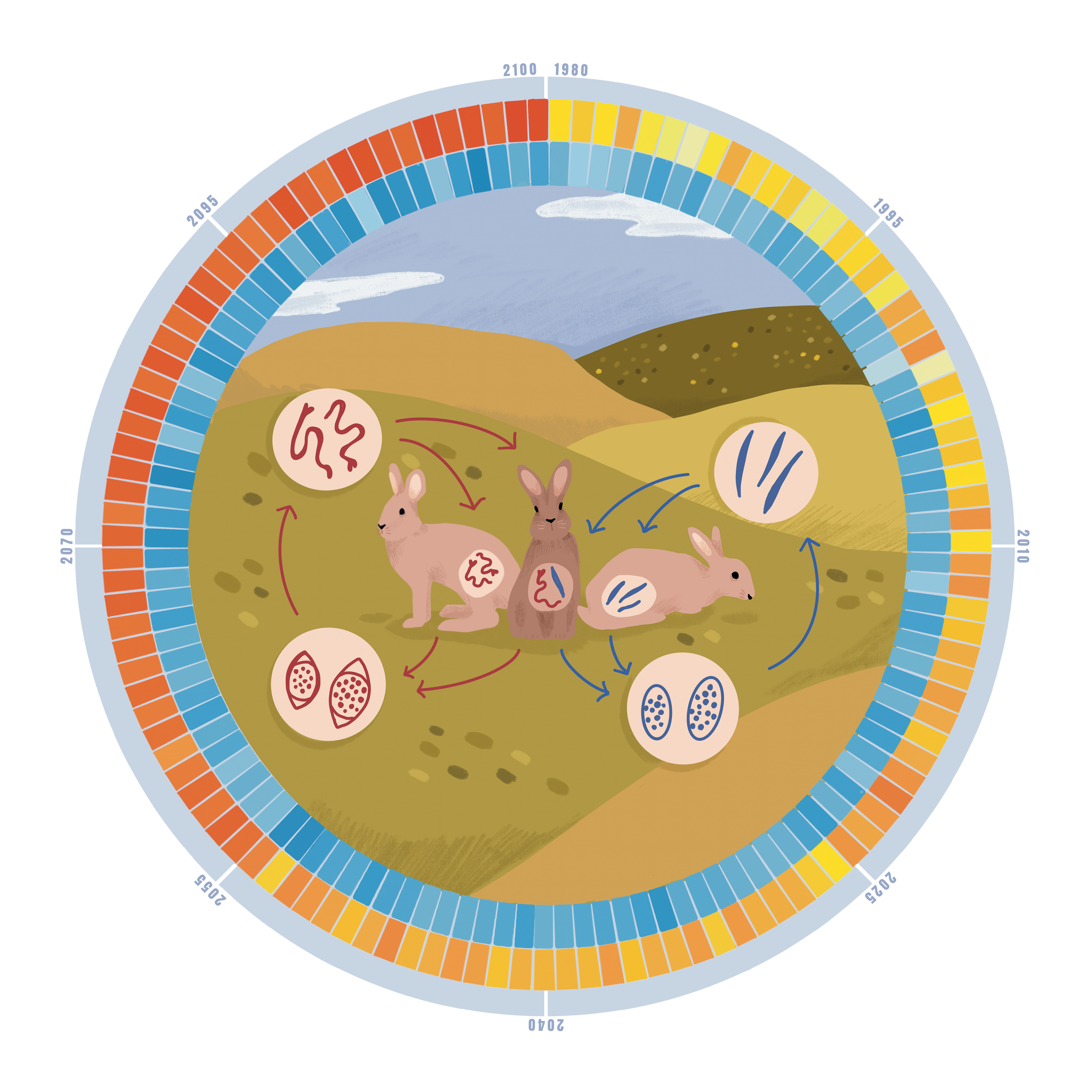 This is a commissioned schematic for a PhD project at Penn State, working on the impact of environmental changes (temperature and humidity) in the host-microorganisms relationship in rabbits. The illustration was published as part of the PhD thesis.