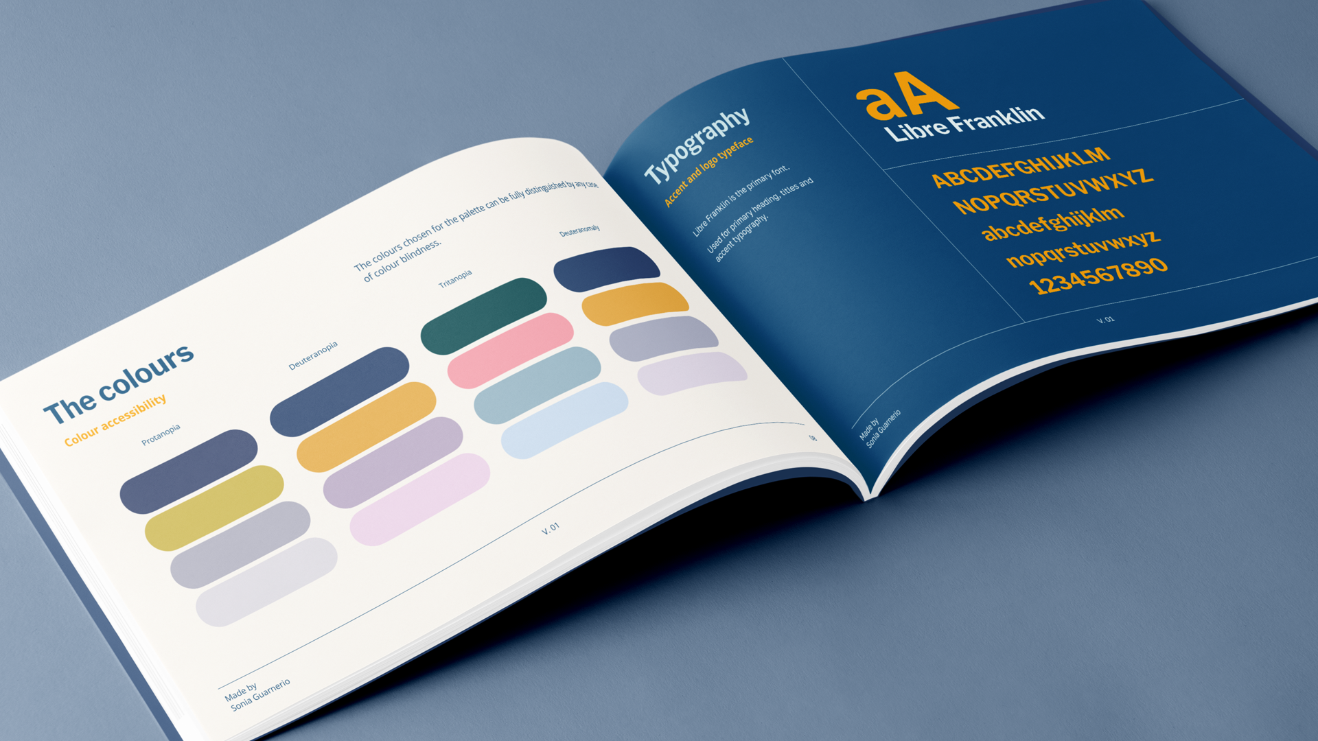 Example of content included in the brand guidelines, from colour accessibility to typography.